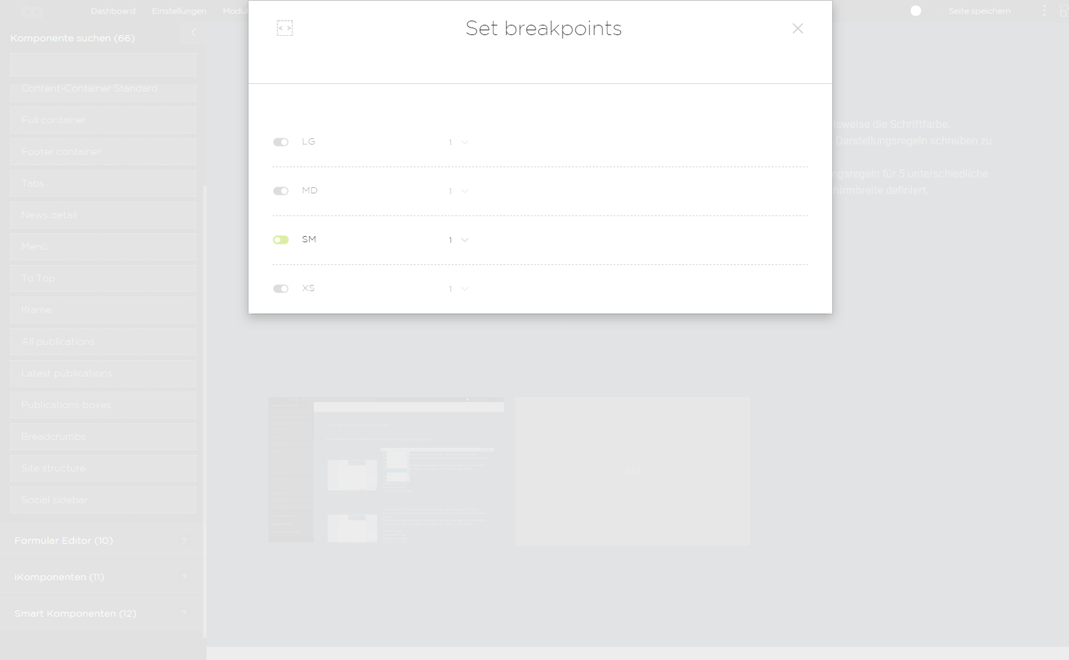 Der Style-Editor bietet die Möglichkeit unterschiedliche Darstellungsregeln für 5 unterschiedliche Viewports einzustellen. Die Einstellungen werden über die Bildschirmbreite definiert.