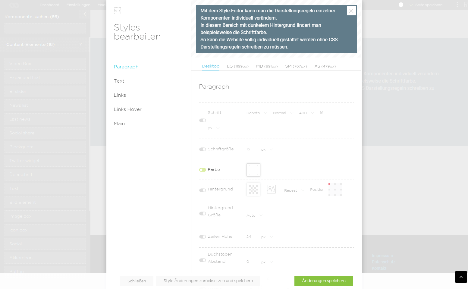 Mit dem Style-Editor kann man die Darstellungsregeln einzelner Komponenten individuell verändern.