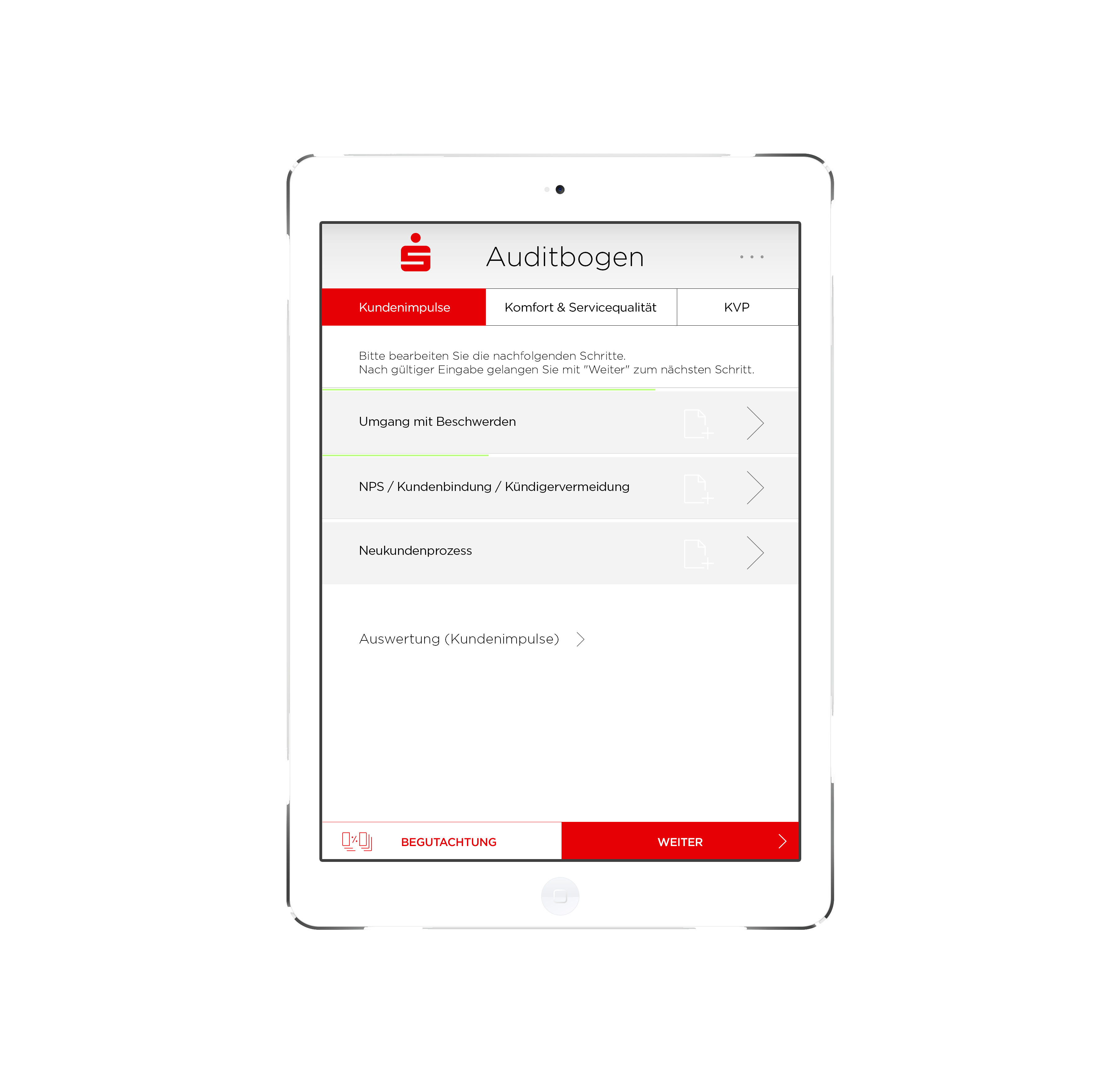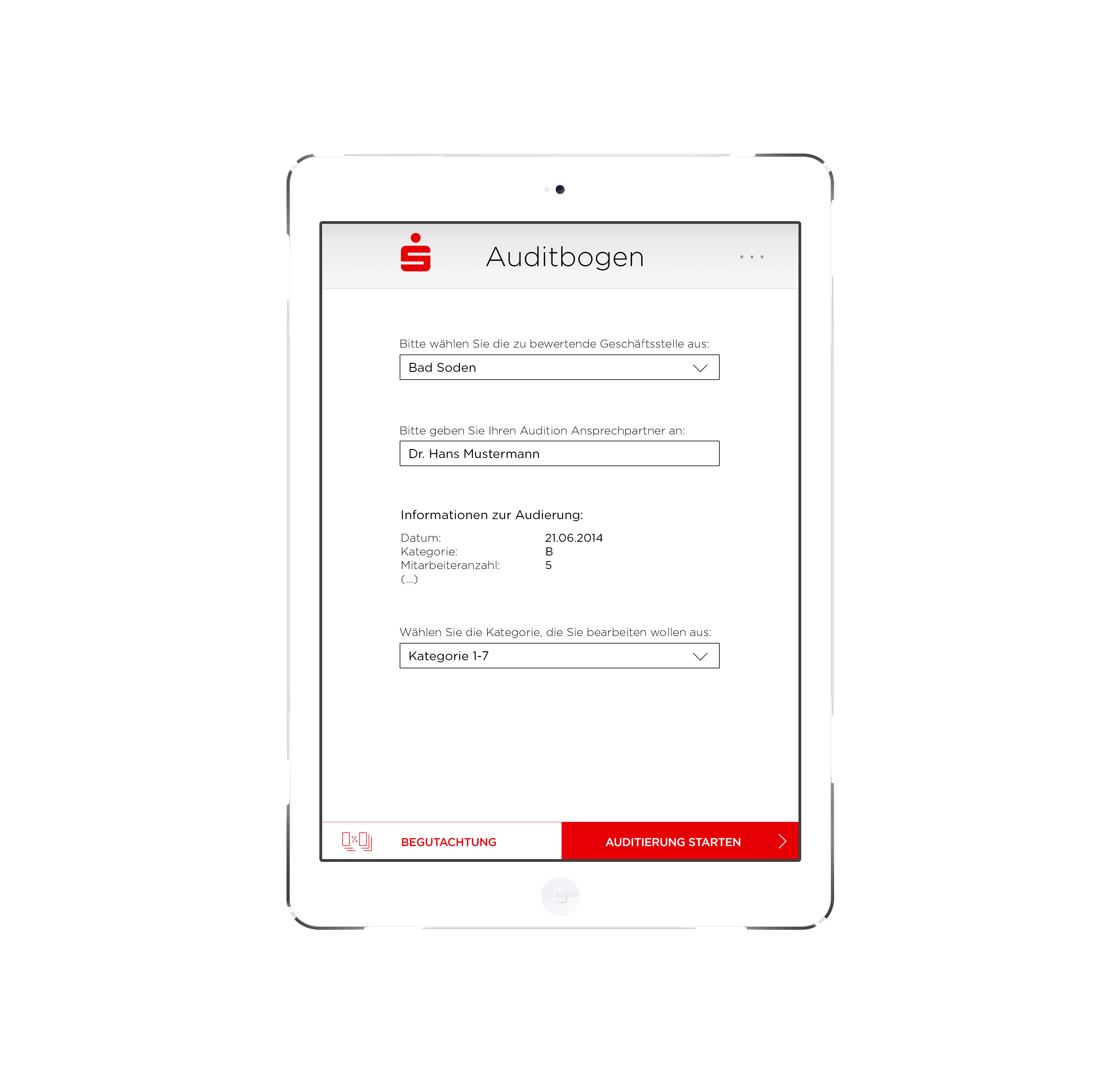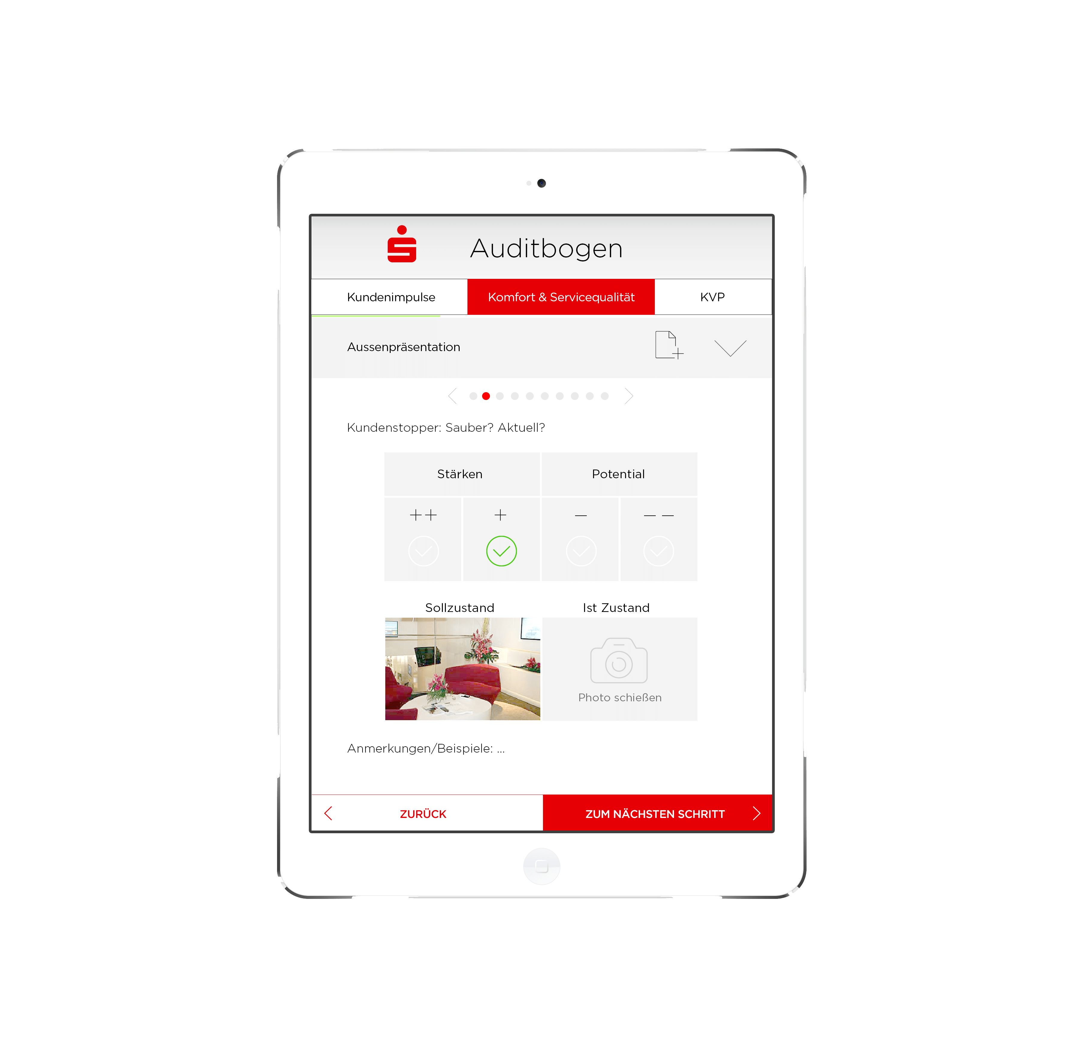 Für eine große deutsche Sparkasse haben wir eine Auditapp für das von uns angebotene Qualitätsmanagement-System programmiert.
